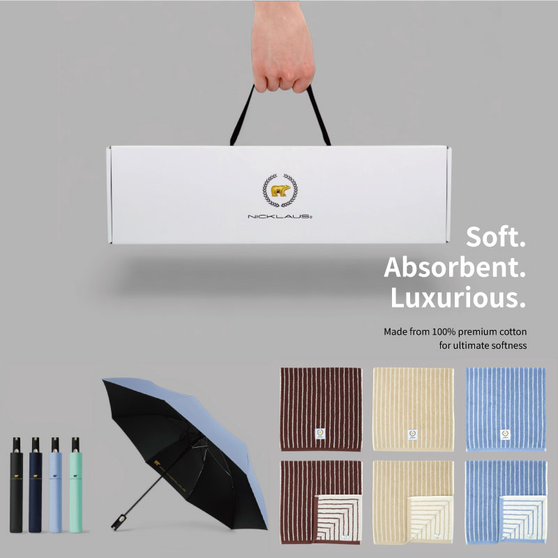 잭니클라우스 2단암막 우양산+호텔수건 스트라이프 180g (국산) 선물세트