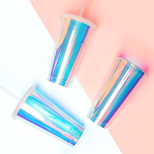 최소수량미만 제작가능여부 상담 문의 인쇄방법 실크, UV 전사 제품재질 몸체 :홀로그램 코팅/ 빨대,내부,뚜껑 : PP 제품크기 710ml / 10.5*17.7cm