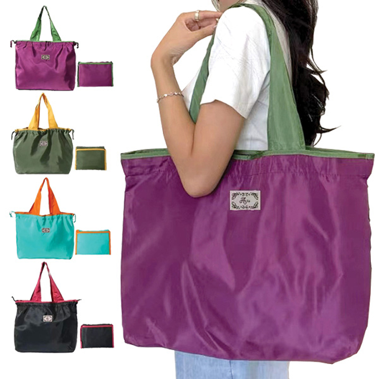 모모카멜 투톤 컬러 포켓 에코백 대형 시장가방 HE23 (45*36*12cm)